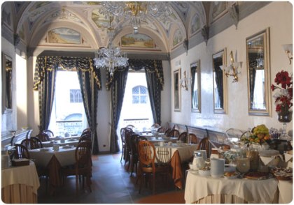 Hotel Degli Orafi (Florencia). La señorita Lucy Honeychurch despertaba a la vida mirando por la ventana de su habitación en Florencia. La Pensión Bertolini no era tal, sino este hotel. Los recepcionistas deben estar hartos de que les pidan una habitación con vistas, por favor