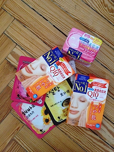 Mascarillas: Monodosis, en paquetes de 28 ( sobran dos días del mes?), de ácido hialurónico, de colágeno, de muchas cosas más que no quiero saber…Mascarillas. Las mascarillas son las castañas asadas de los tokiotas, las venden en cada esquina. El formato es siempre el mismo: son un tissue húmedo que se extiende sobre la cara a lo Hannibal Lecter y se deja actuar durante 20 minutos.